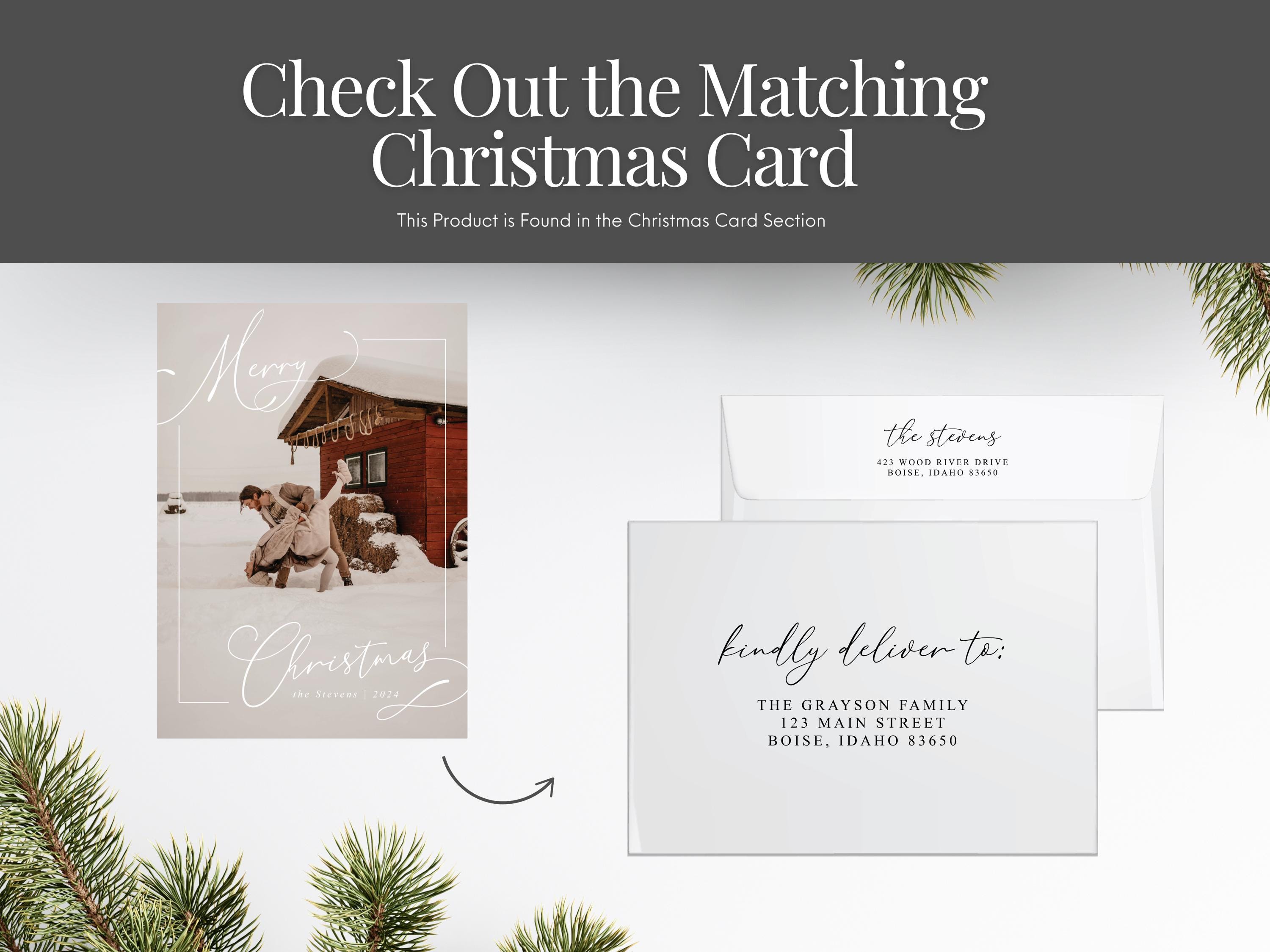 Complete your Christmas cards with custom addressed envelopes, perfectly sized for 5x7 cards. Each envelope is printed with your return address and your recipient's address, adding a professional touch to your holiday mail.