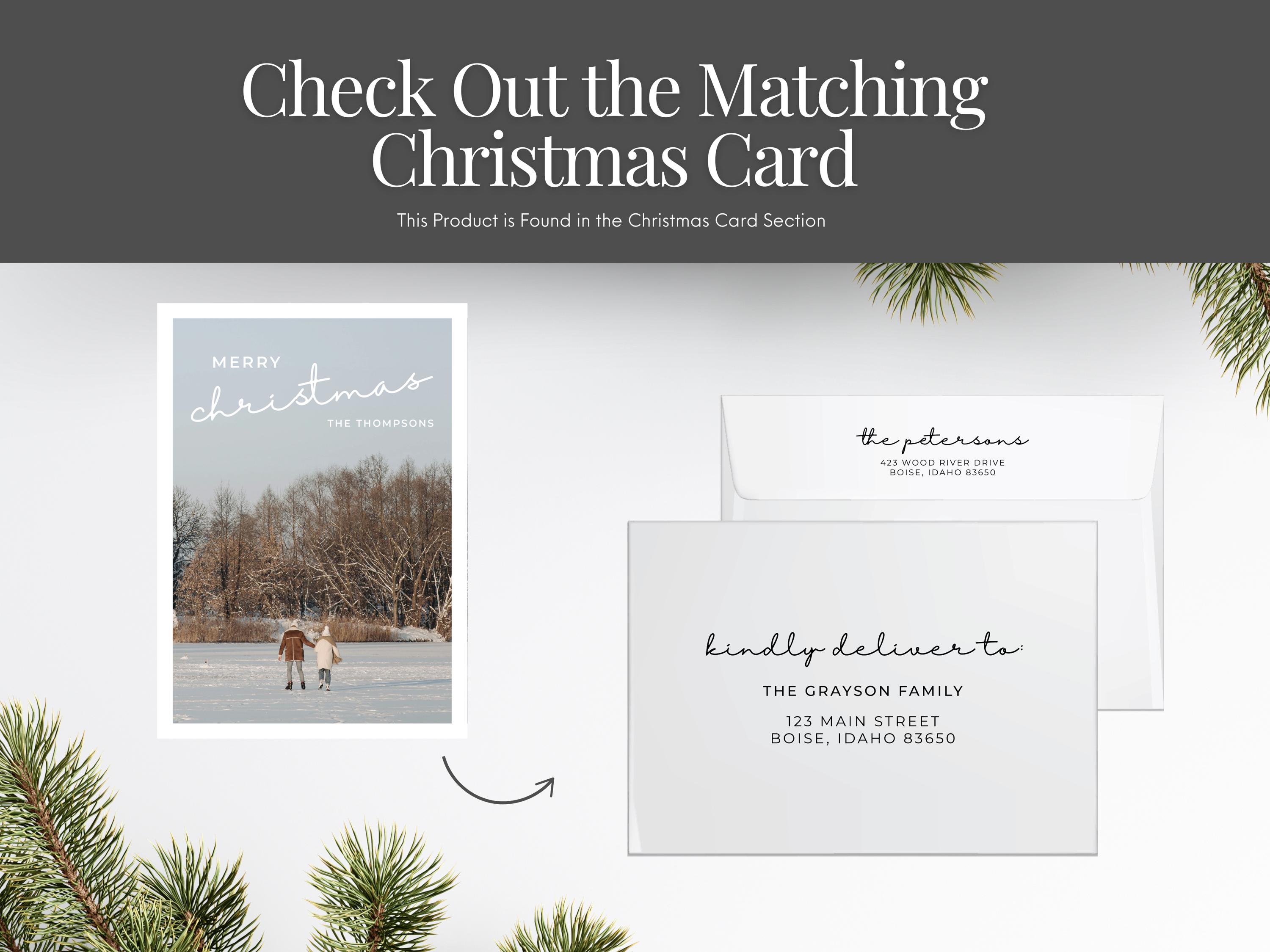 Complete your Christmas cards with custom addressed envelopes, perfectly sized for 5x7 cards. Each envelope is printed with your return address and your recipient's address, adding a professional touch to your holiday mail.