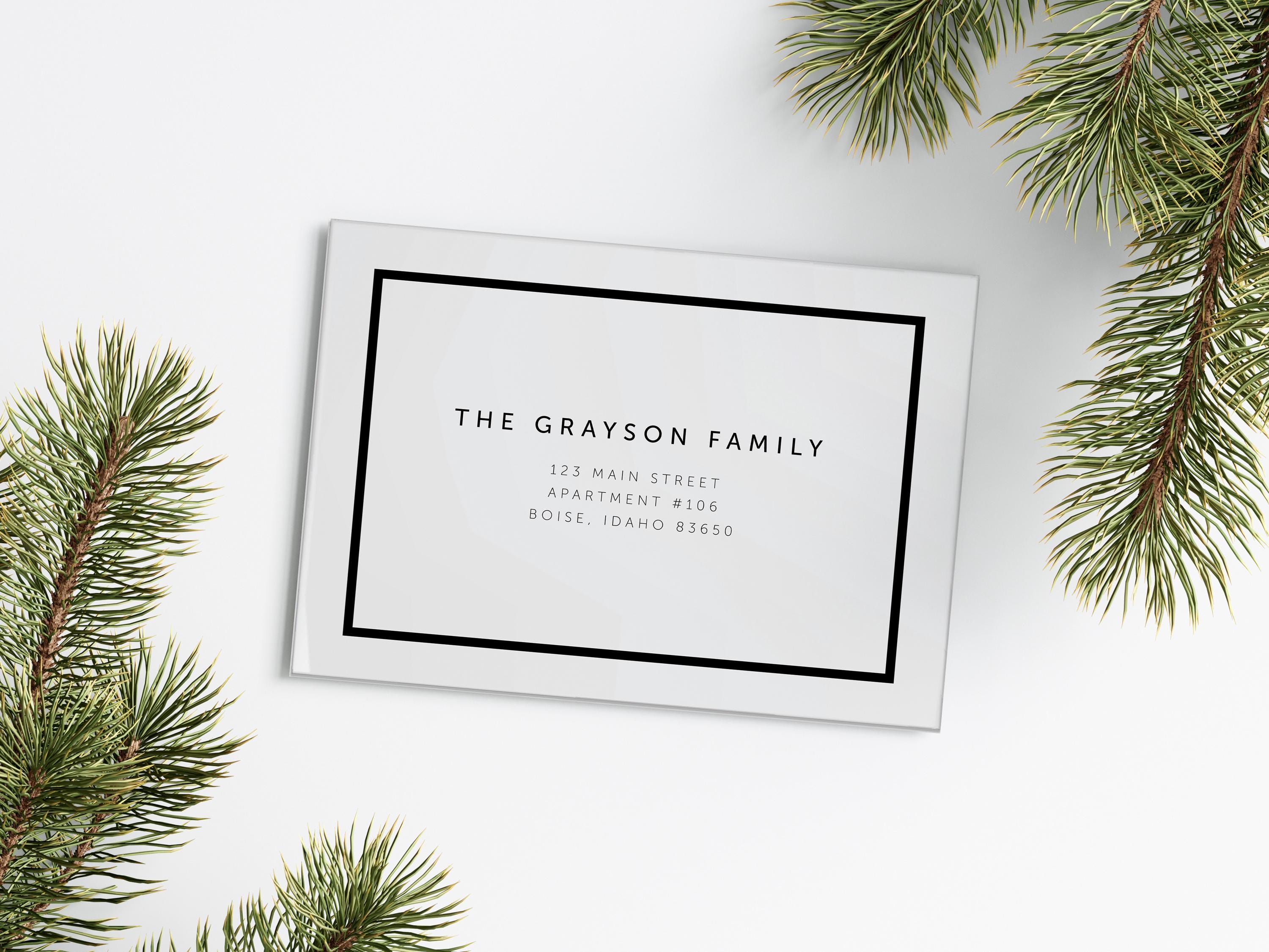 Complete your Christmas cards with custom addressed envelopes, perfectly sized for 5x7 cards. Each envelope is printed with your return address and your recipient's address, adding a professional touch to your holiday mail.
