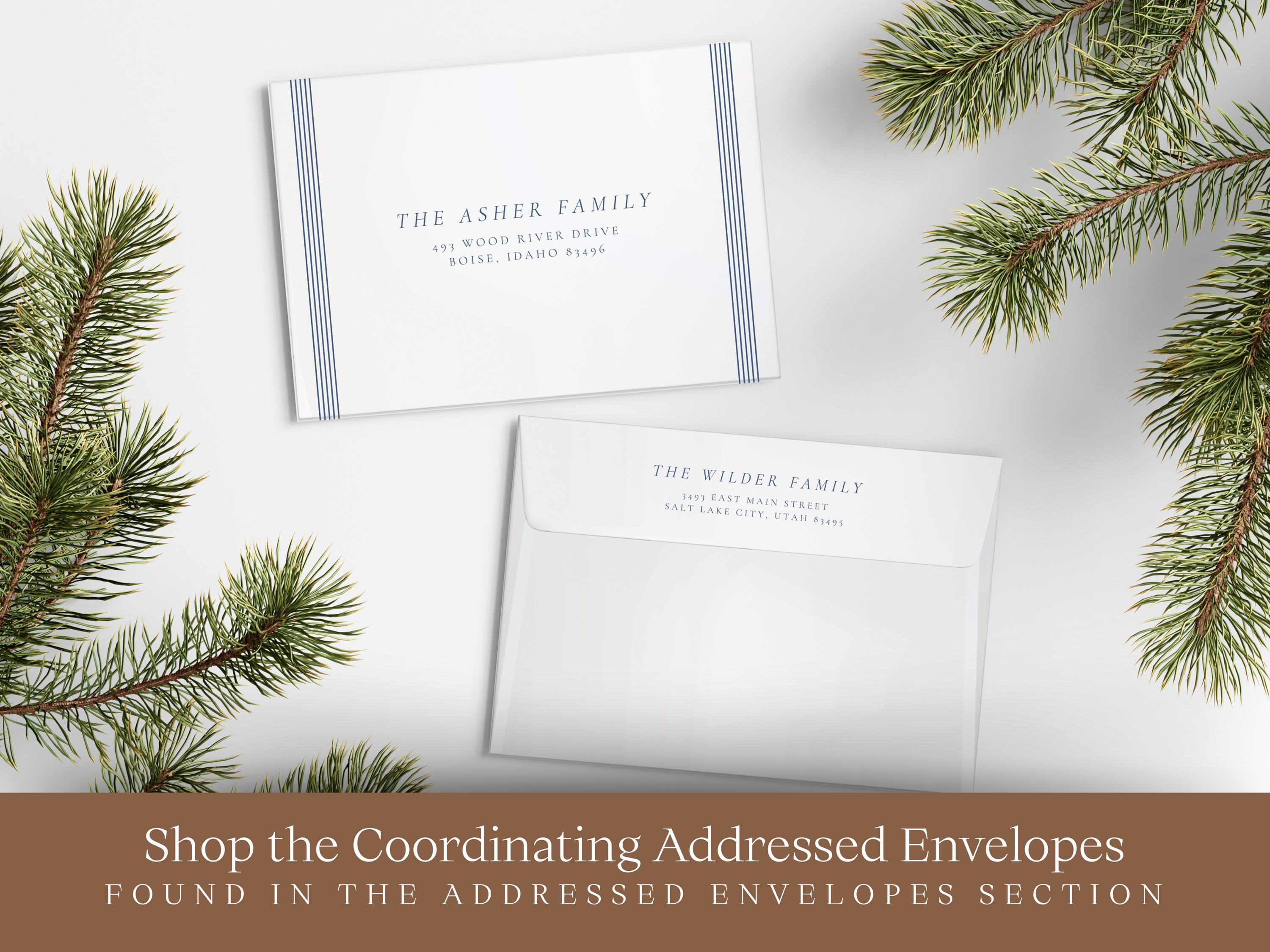 Envelopes: www.lizziebdesignstudio.com/listing/4399621541/elegant-striped-christmas-card-envelopes