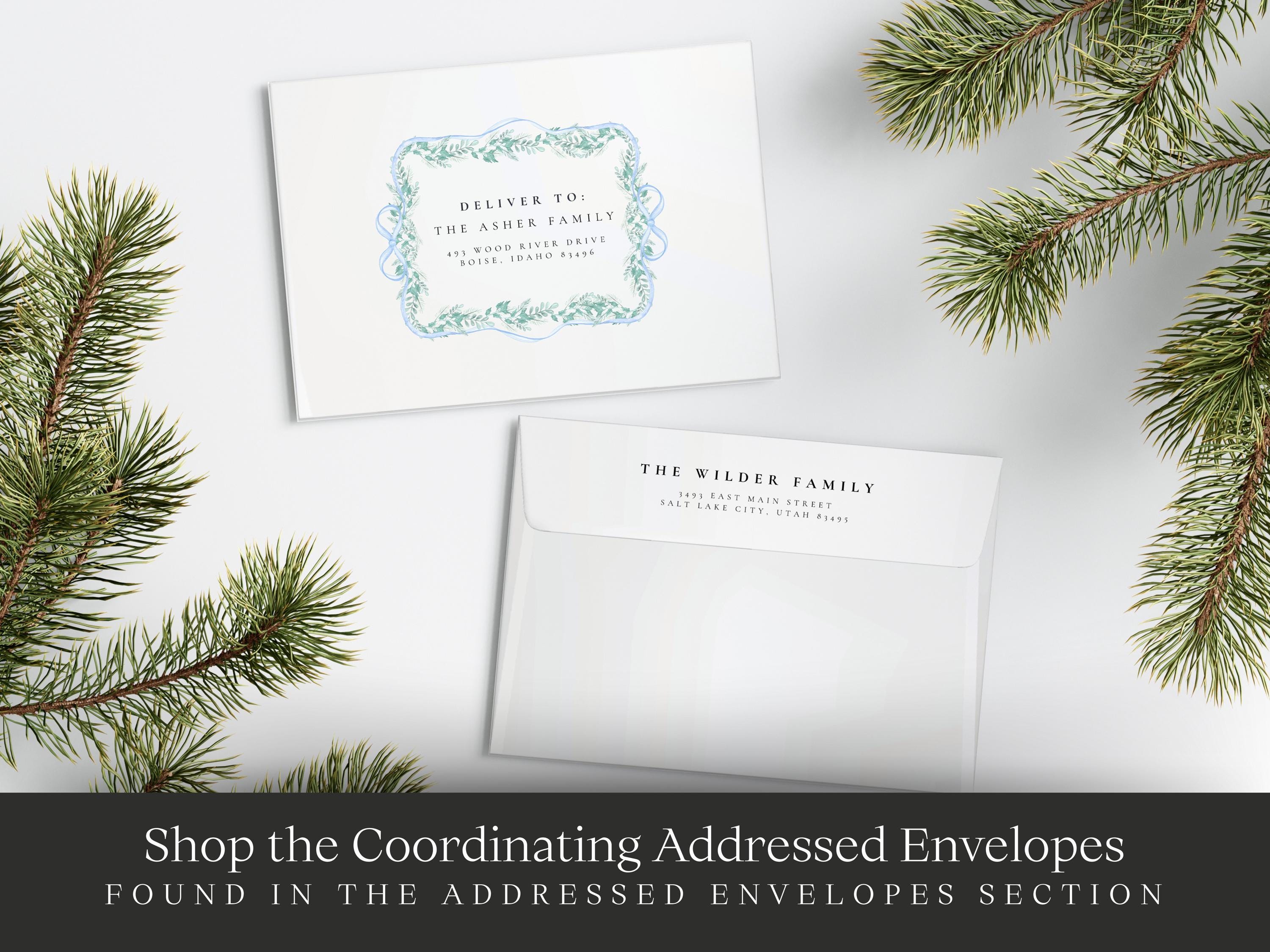 Envelopes: www.lizziebdesignstudio.com/listing/4403244202/holiday-garland-design-christmas-card