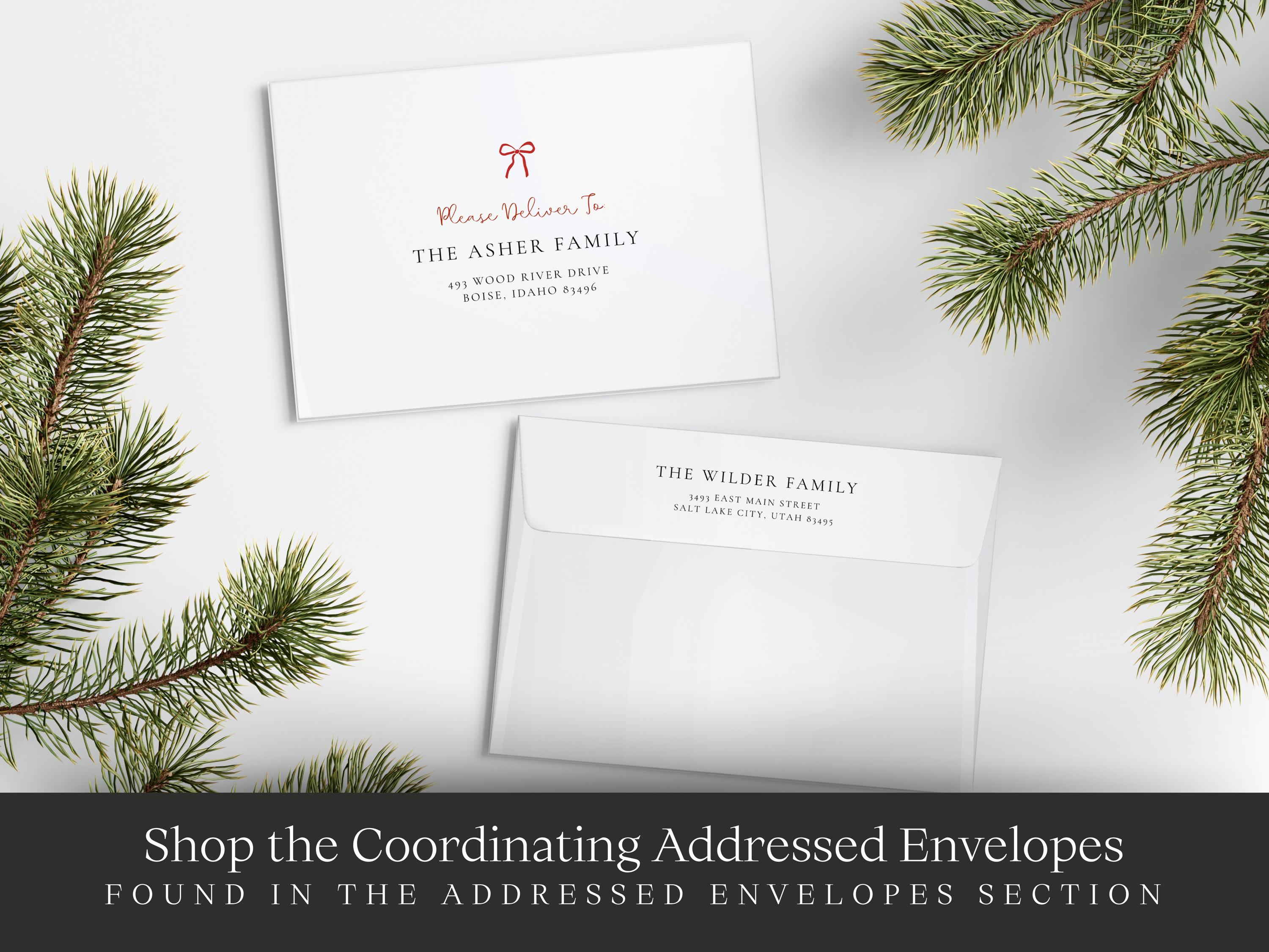 Envelopes: www.lizziebdesignstudio.com/listing/4403246986/whimsical-bow-christmas-card-envelopes