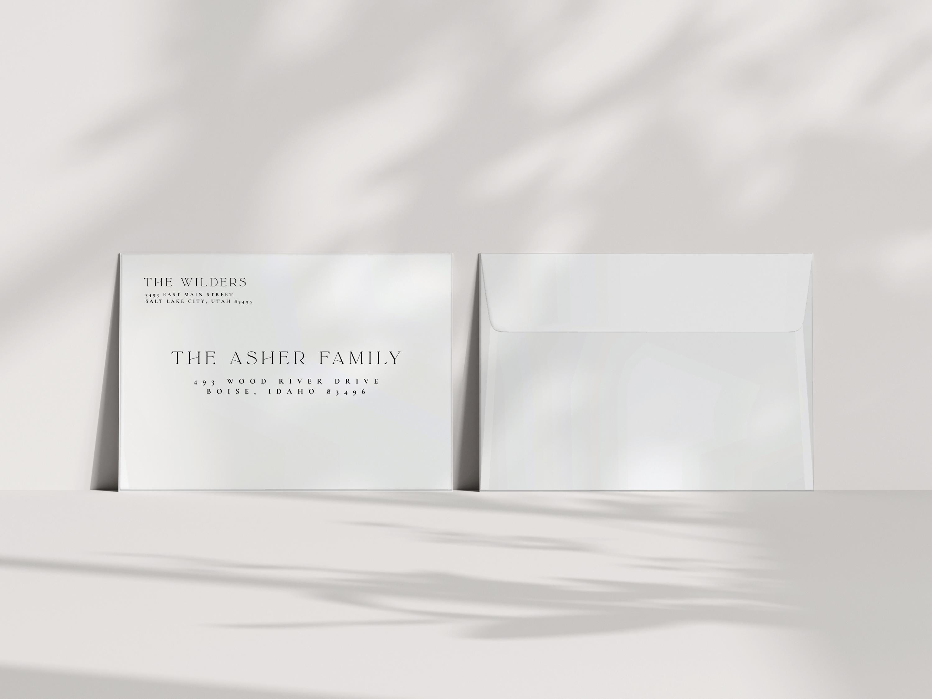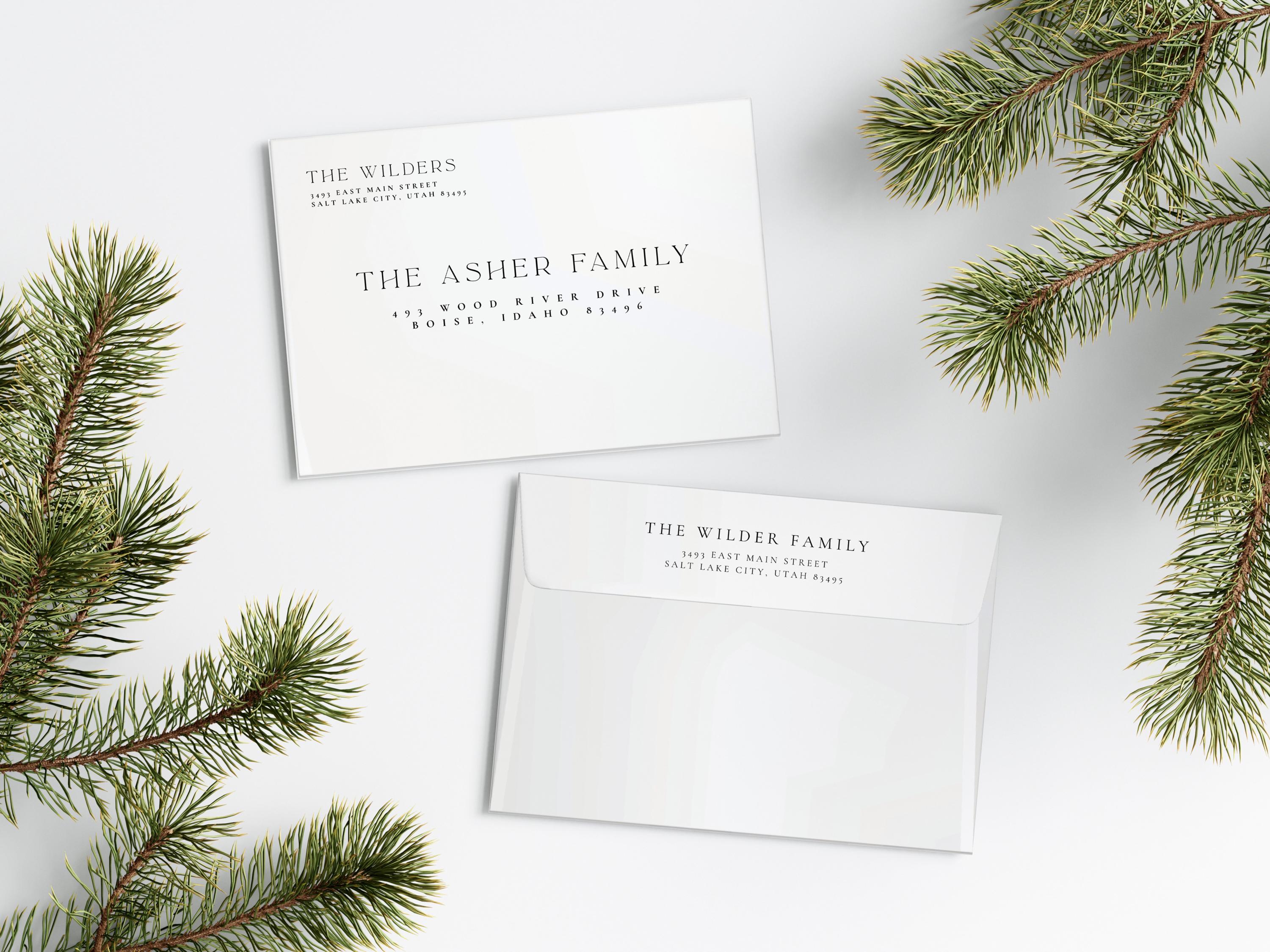 Complete your Christmas cards with custom addressed envelopes, perfectly sized for 5x7 cards. Each envelope is printed with your return address and your recipient's address, adding a professional touch to your holiday mail.