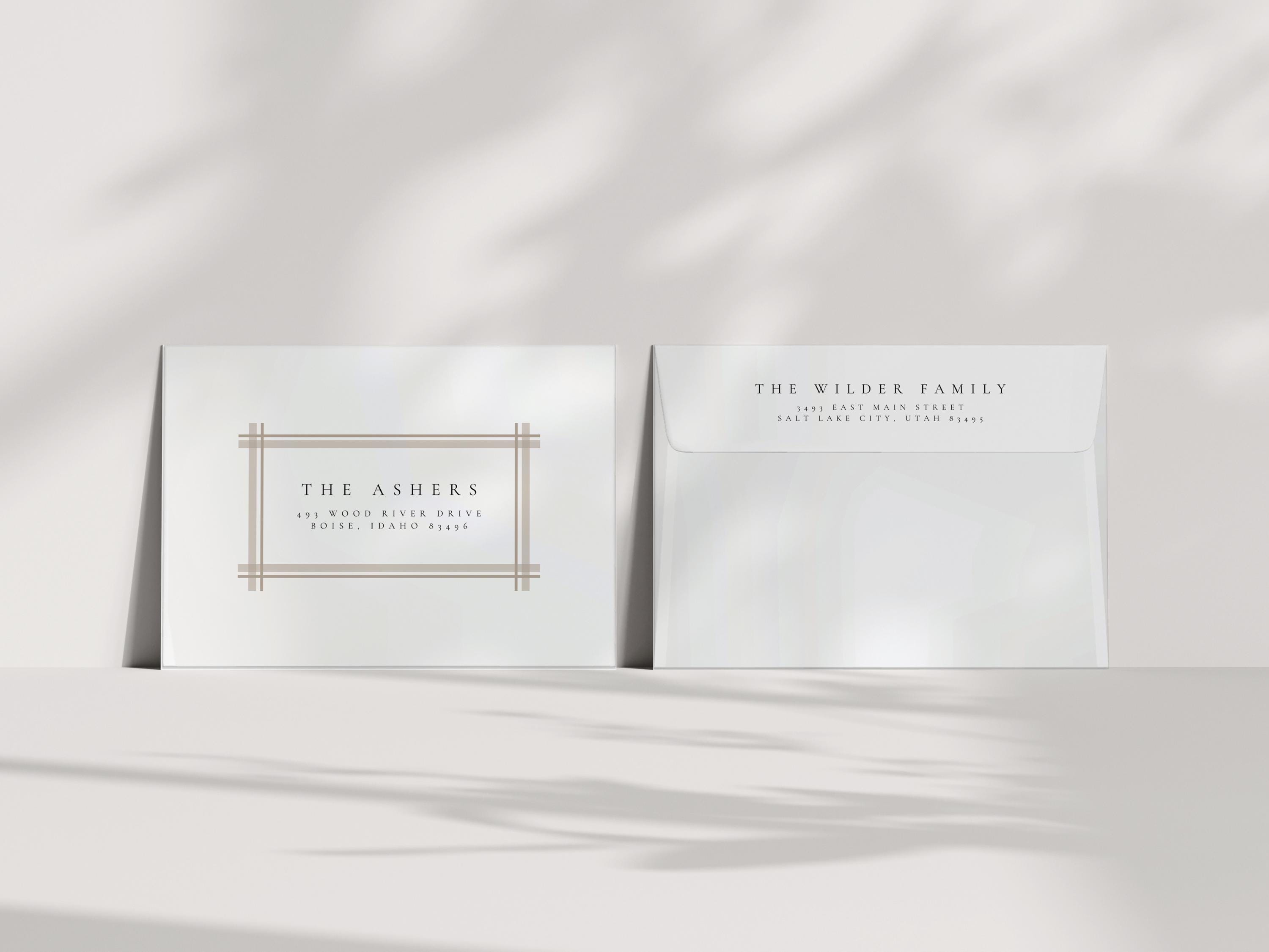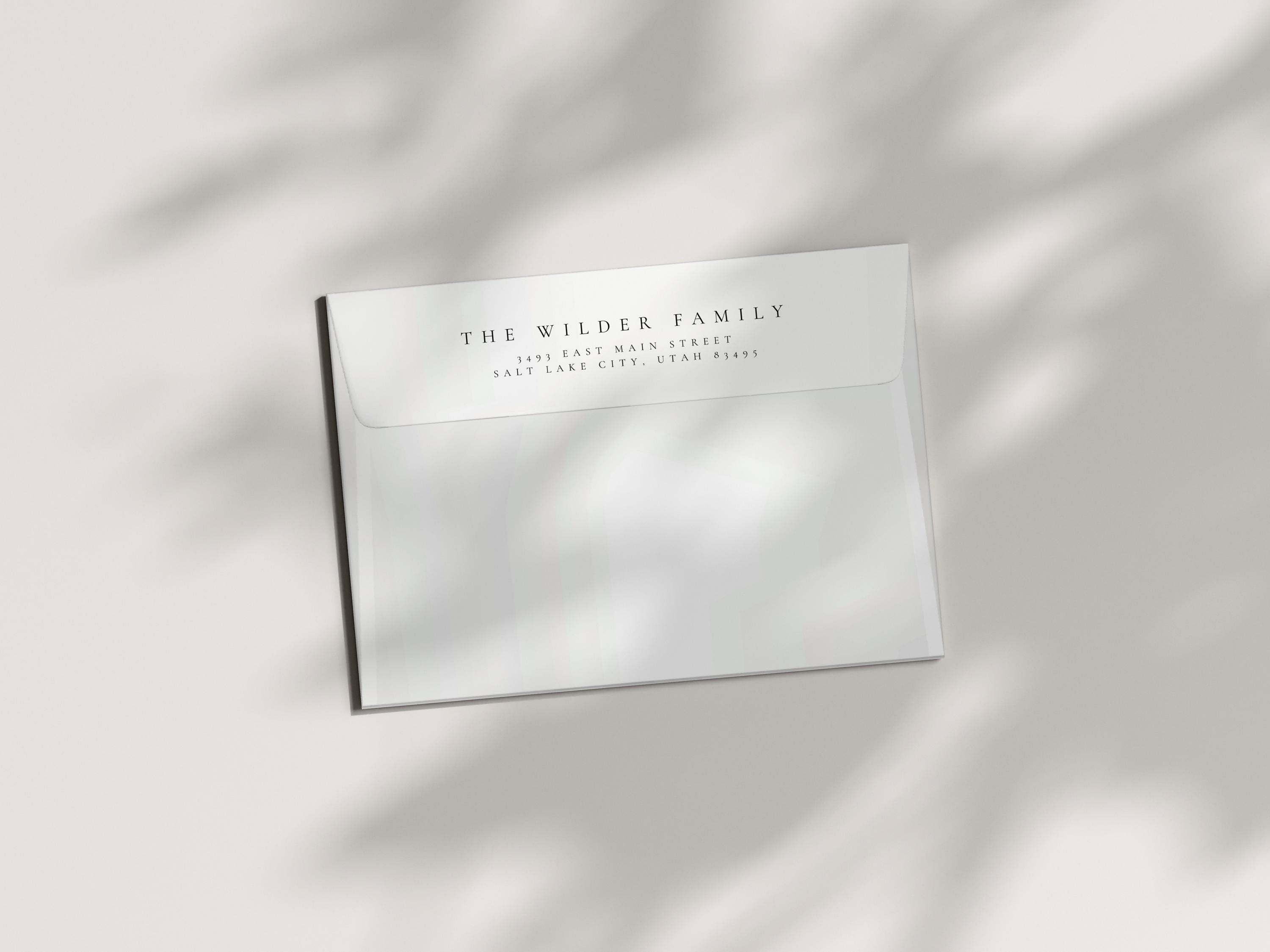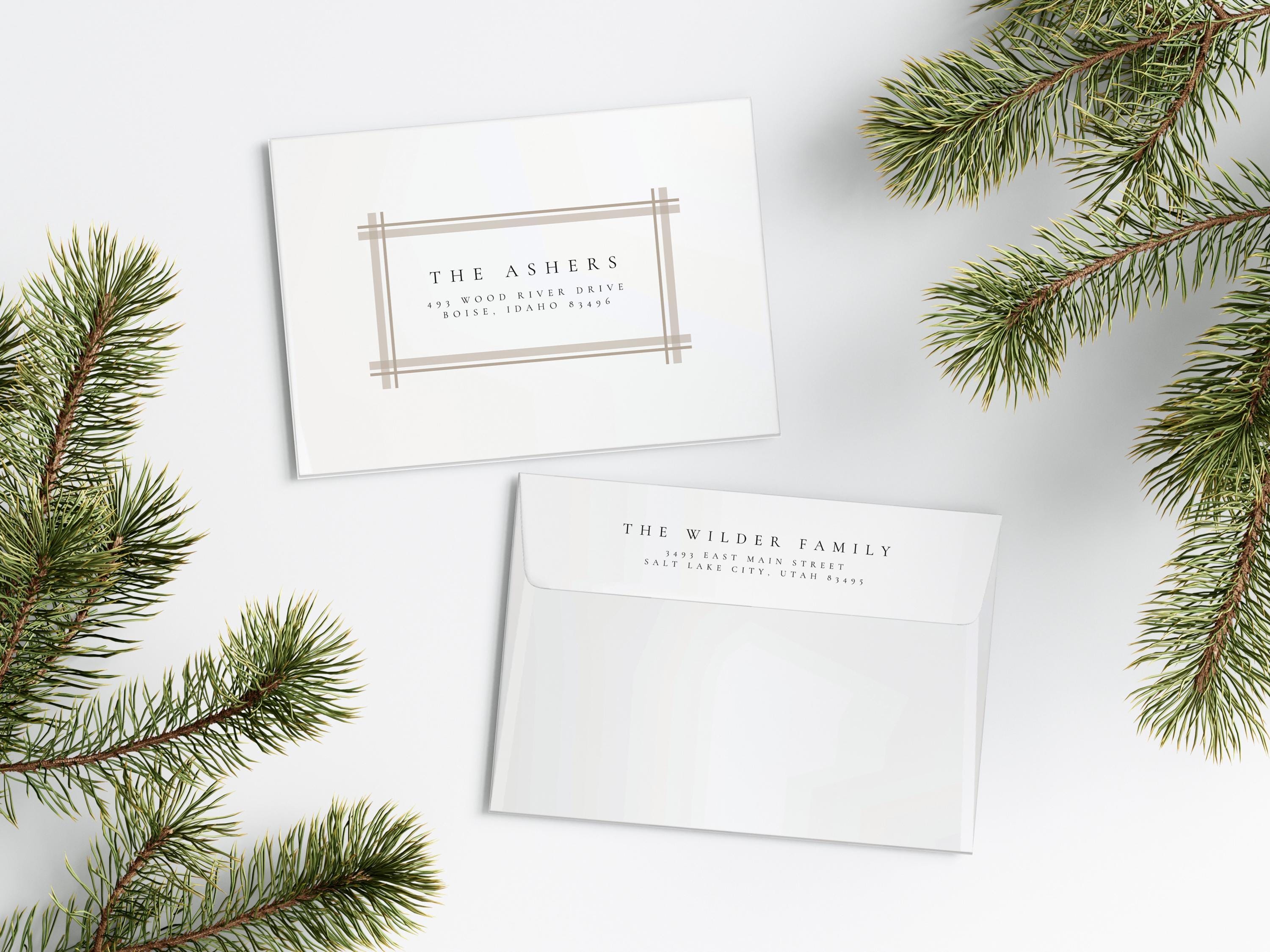 Complete your Christmas cards with custom addressed envelopes, perfectly sized for 5x7 cards. Each envelope is printed with your return address and your recipient's address, adding a professional touch to your holiday mail.
