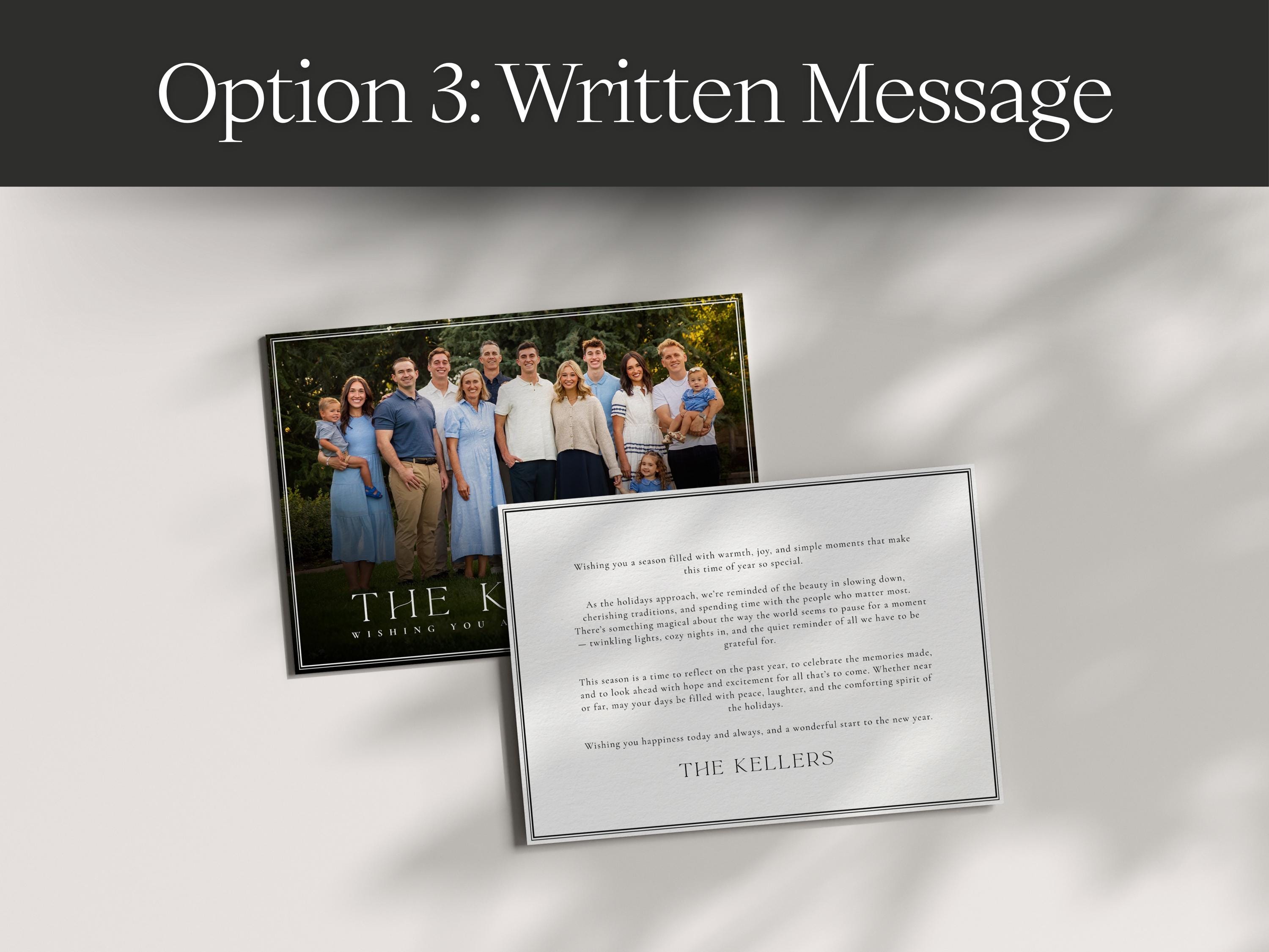 3. Written Message: Craft a heartfelt message to share your holiday sentiments.
