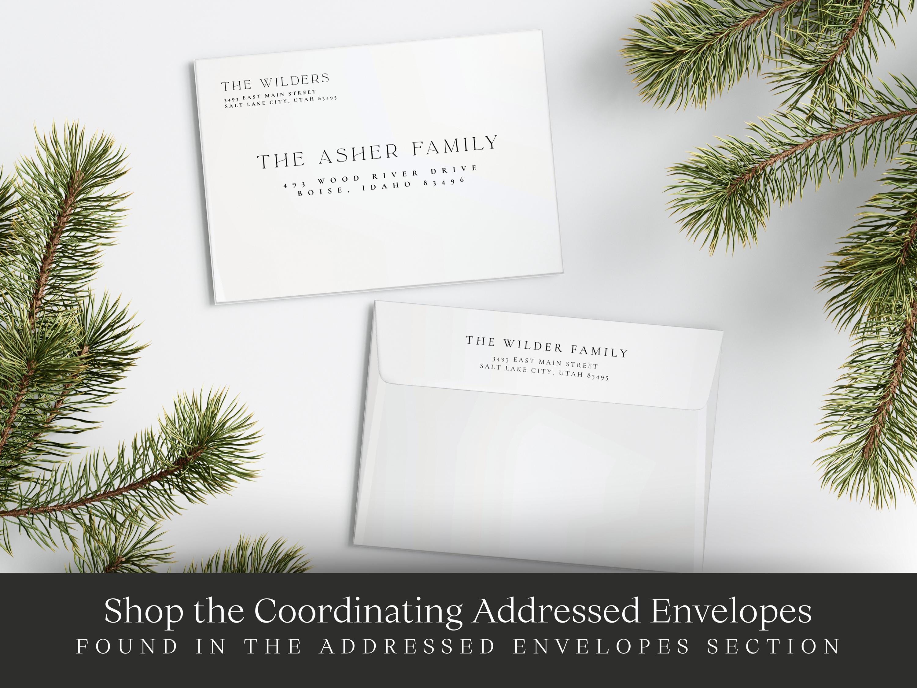 Envelopes: www.lizziebdesignstudio.com/listing/4403253736/traditional-simple-christmas-card