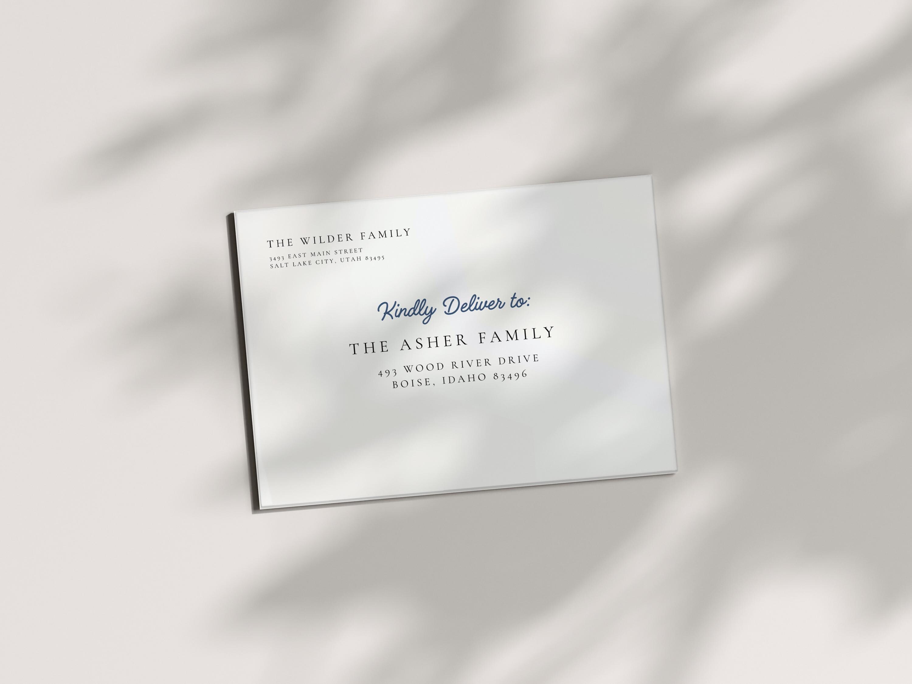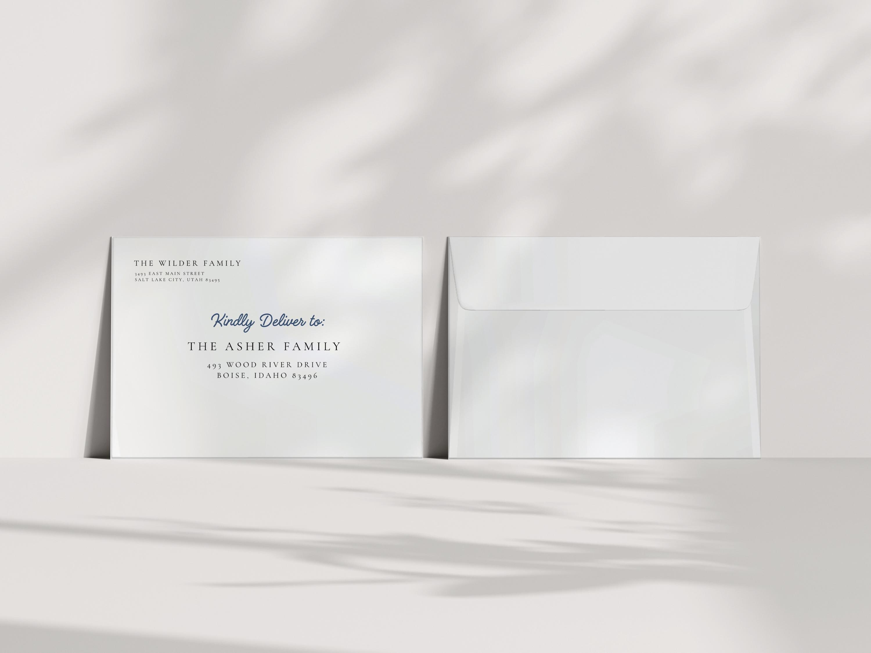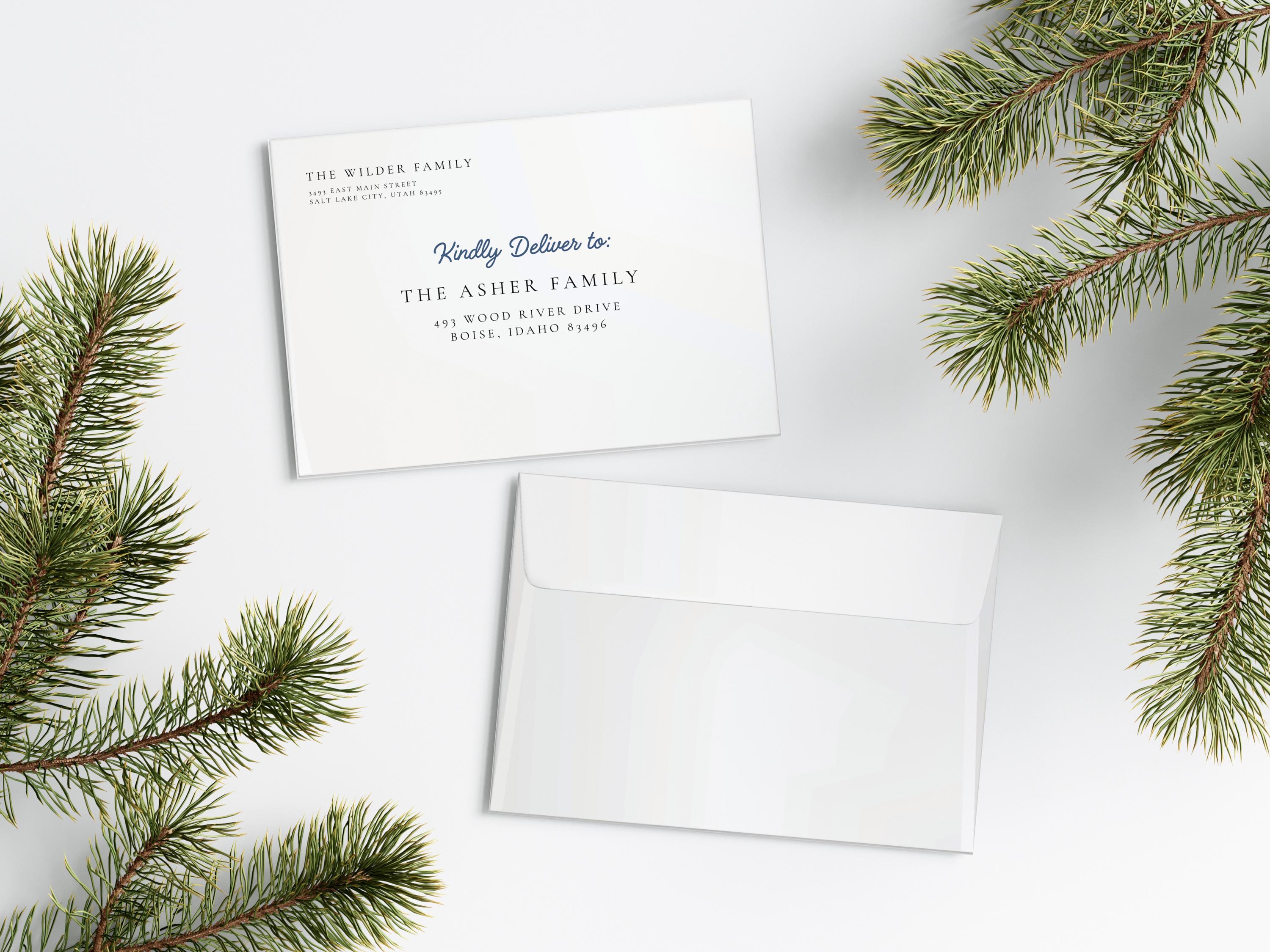 Complete your Christmas cards with custom addressed envelopes, perfectly sized for 5x7 cards. Each envelope is printed with your return address and your recipient's address, adding a professional touch to your holiday mail.